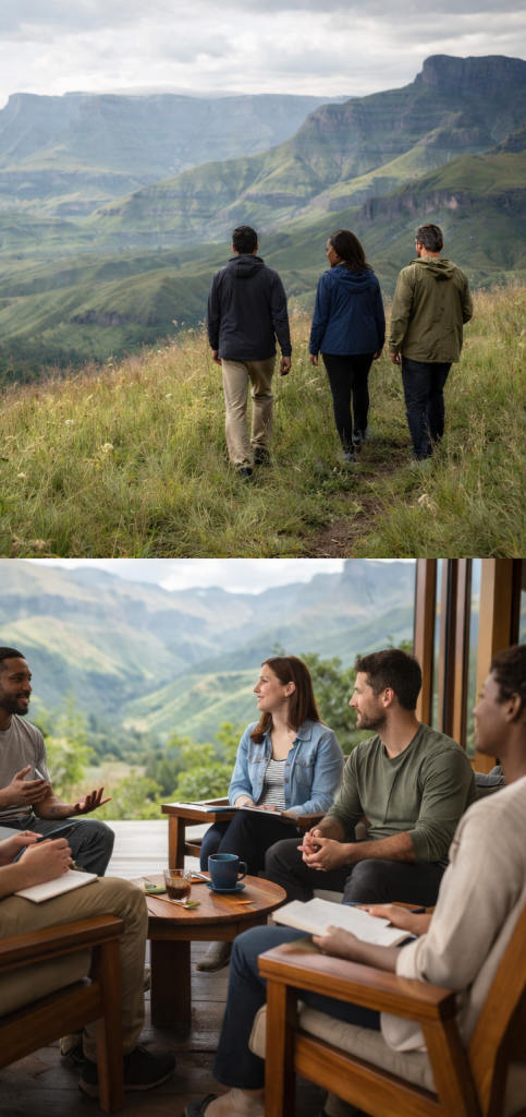 Retreats are typically hosted in the Drakensberg, providing a calm and restorative natural environment that supports reflection and renewal.